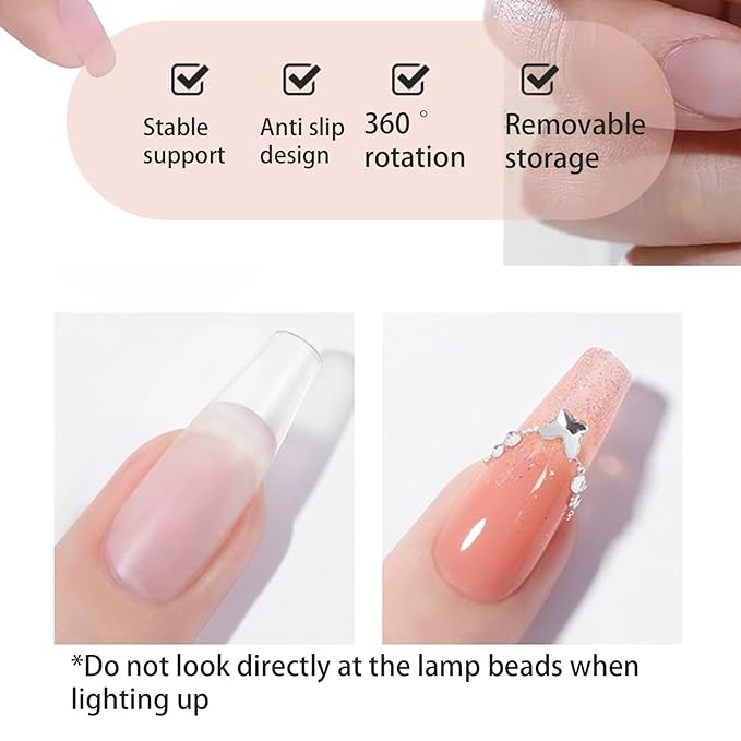 Compatta con soli 111×79mm, questa lampada per unghie è leggera e facile da trasportare—perfetta per viaggi o uso domestico. Con alimentazione ricaricabile USB, puoi usarla ovunque collegandola a un laptop, power bank o adattatore.